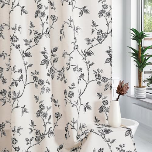 For the shower curtain, I’d try to bring in some white. All black or gold can just feel way to heavy. This one has pops of black and will look great with gold accents.